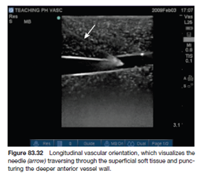 A técnica dinâmica longitudinal possibilita a visualização direta da agulha perfurando o vaso. (Figura 3) (3,6).
